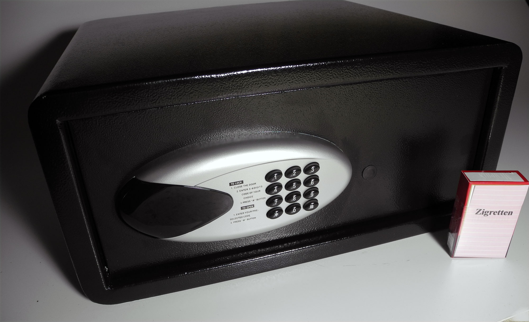 Cash boxes, key boxes, key safes, room safes—also in a practical laptop format, private safes & commercial safes, fire-resistant safes, gun cabinets, alarm systems, mailbox systems, key rings, and much more.